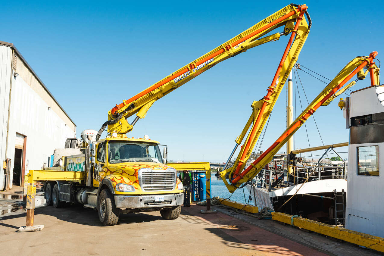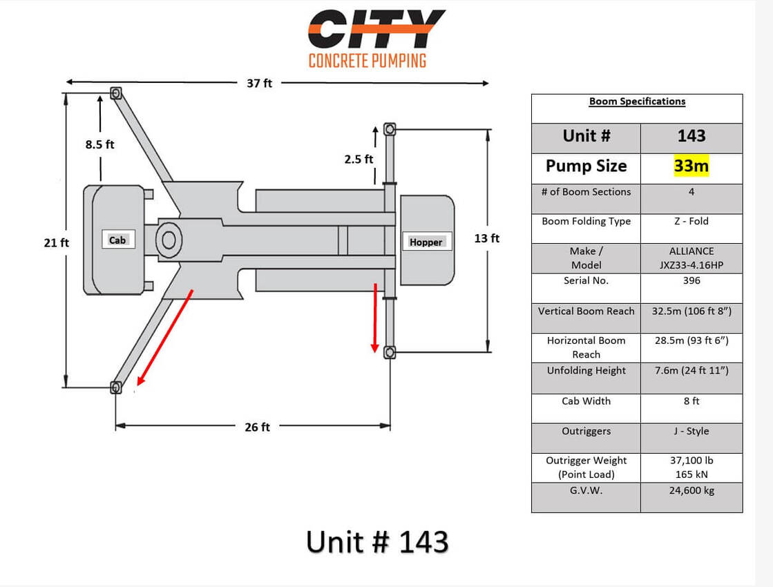 The Freightliner 33m is one of our most versatile pumps due to compact size. It has increased reach over other 33m pumps and the powerful pumping performance with a small footprint makes it ideal for restrictive job sites. The 33m really shines when it comes to booming inside of existing structures as well as for safely working underneath of overhead hazards.