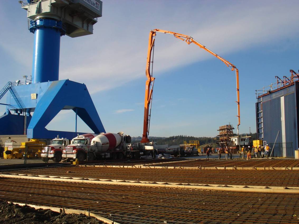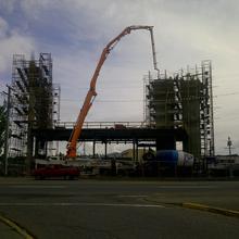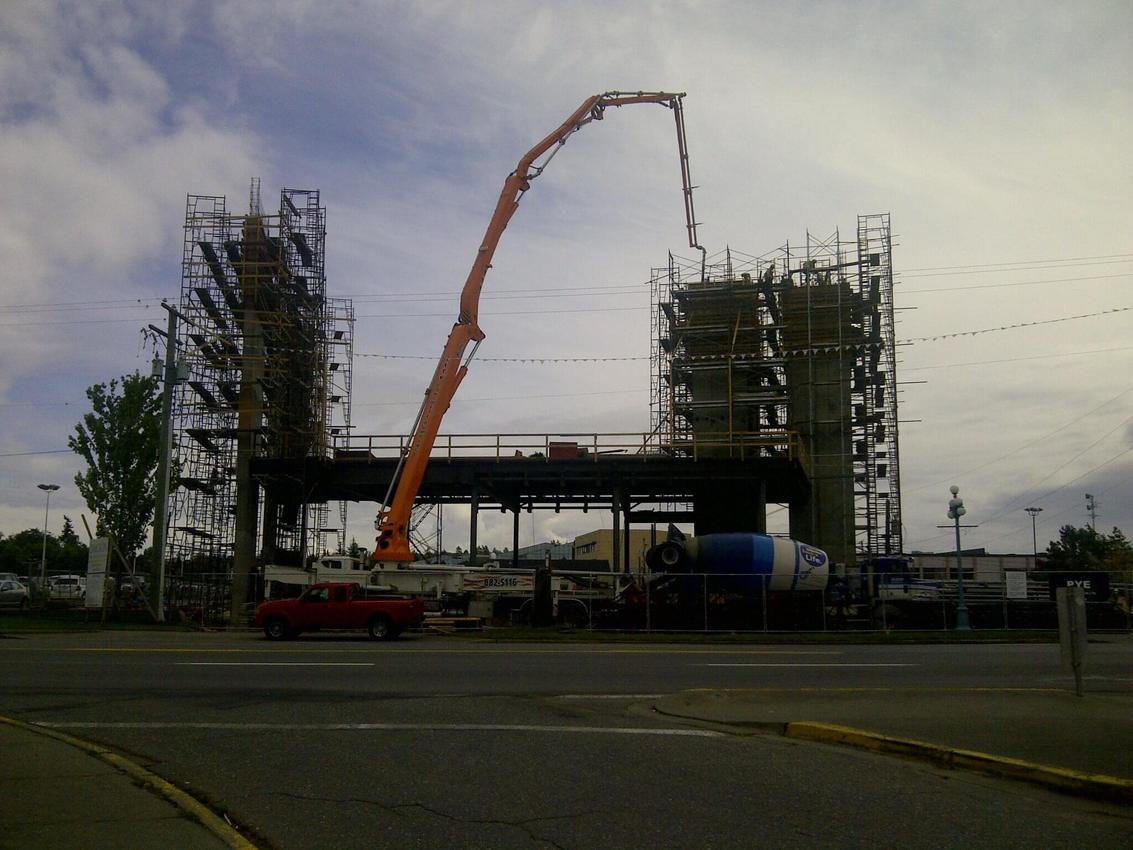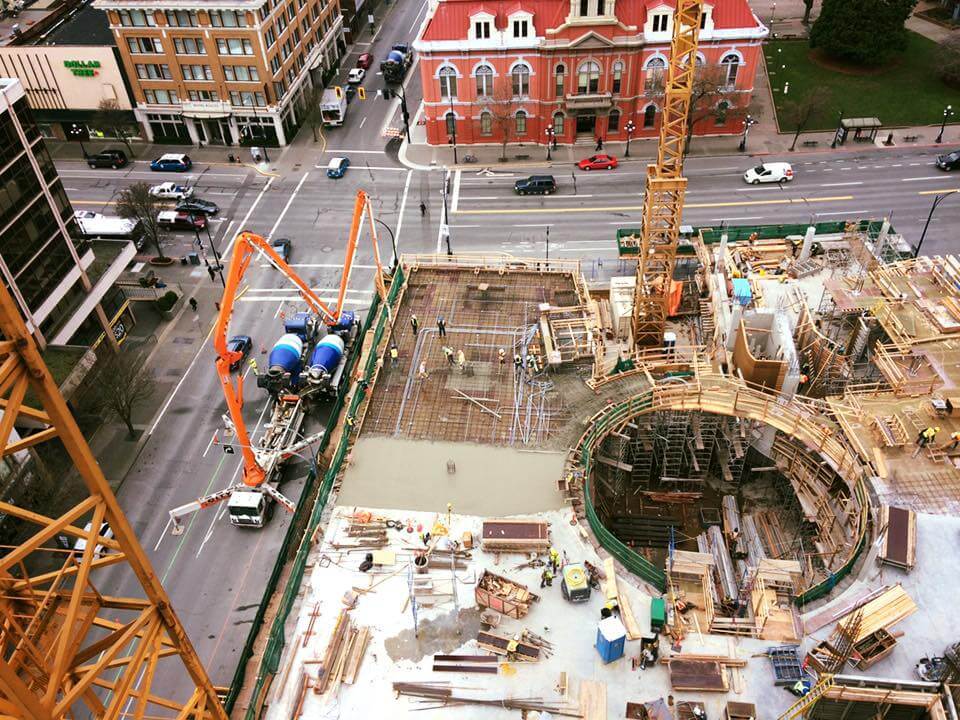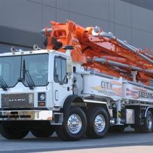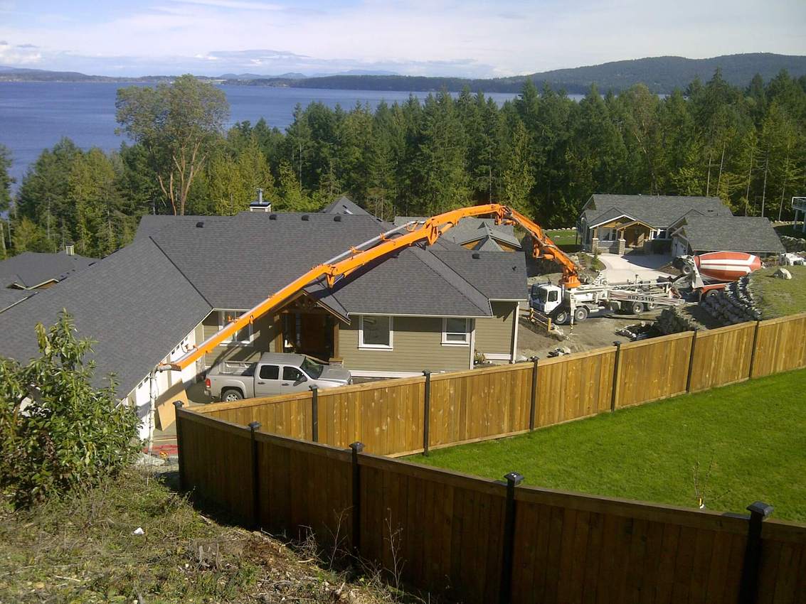 The Jun Jin 50 meter pump is one of our bigger units, perfect for situations that require a high vertical reach or a long horizontal extension. Unit 111 is able to reach over a house in Oak Bay to pour a patio as easily as work a high-rise in downtown Victoria. Pumping services for The Capital Park project in James Bay kept Unit 111 busy for months, including a 15 story tower for The Tapestry on Bellville – ideal work for the 50 meter platform.